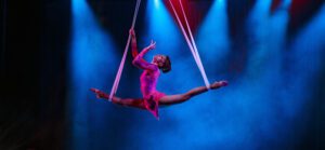 Aerialist perform live in the show.
