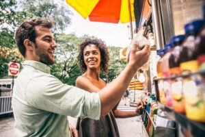 Couple at kiosk in New York